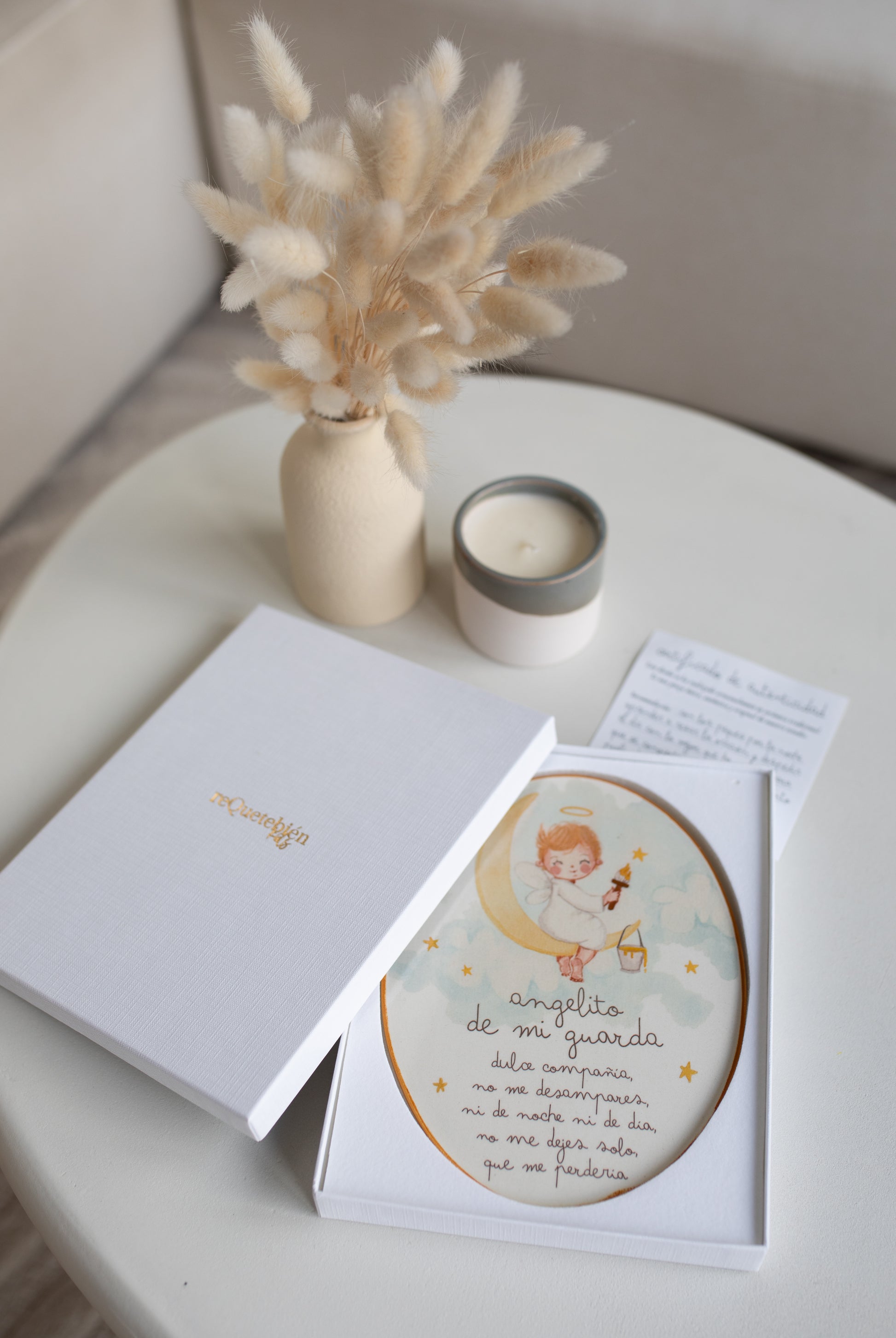 Hemos escogido al Angelito de la Guarda más tierno llega para que lo tengáis en casa y os cuide a todos. Lleva su oración para que los peques aprendan su jaculatoria y les cuide siempre. Así le podréis enseñar que cada niño tiene su angelito cuidando de él siempre desde el cielo. Este Angelito de mi guarda está creado en un torno artesano en un taller de cerámica tradicional. Cada pieza es única, pues se prepara uno a uno, y están hechos en España.
