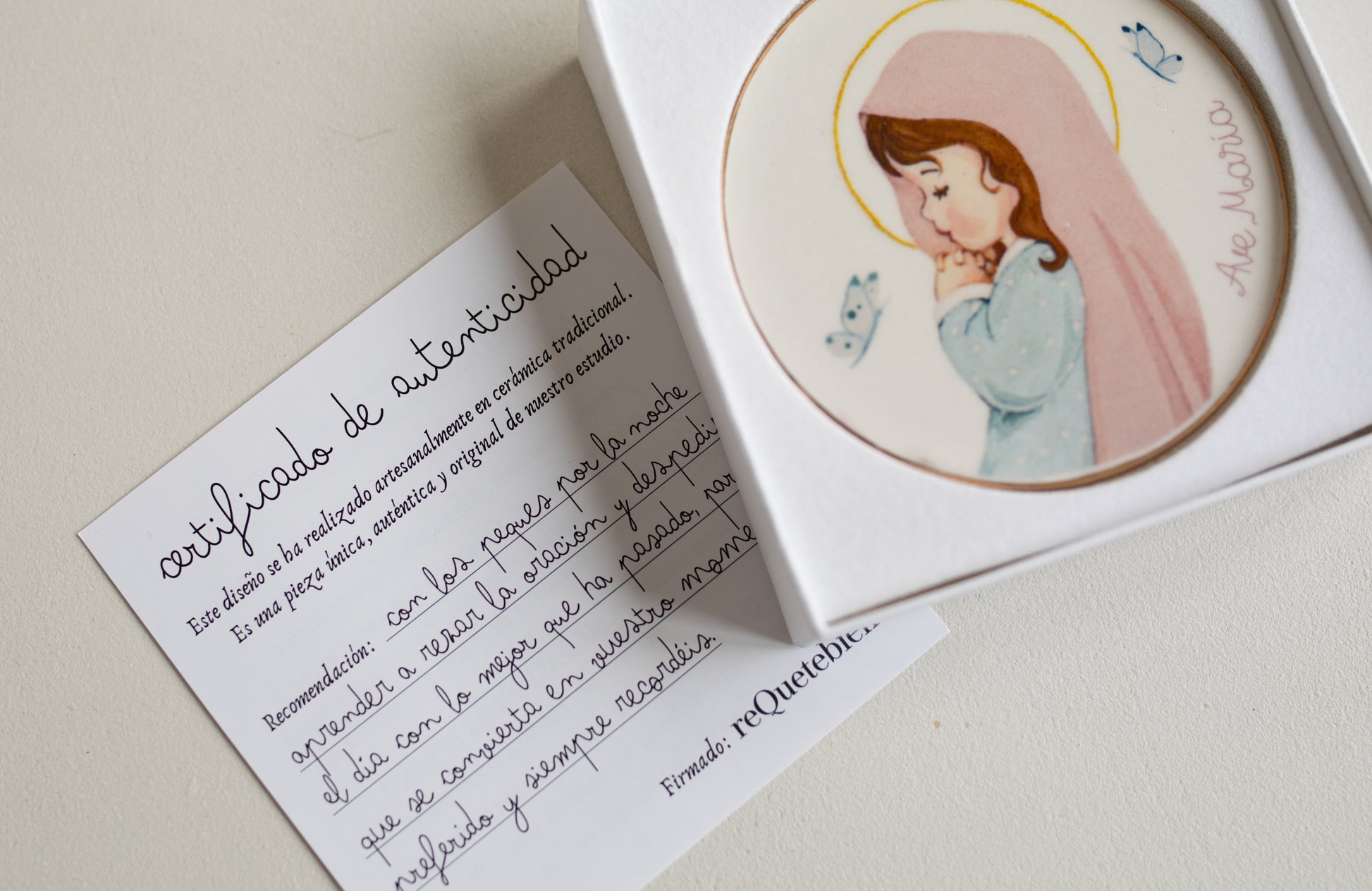 Estas Virgencitas son edición LIMITADA. Con su corona de flores y colores vibrantes. Están pensada para cunas, carritos y cuartos infantiles para rezar con nuestros peques y recordarle que la Madre del Cielo también fue niña… ¡y siempre nos cuida desde el Cielo!
